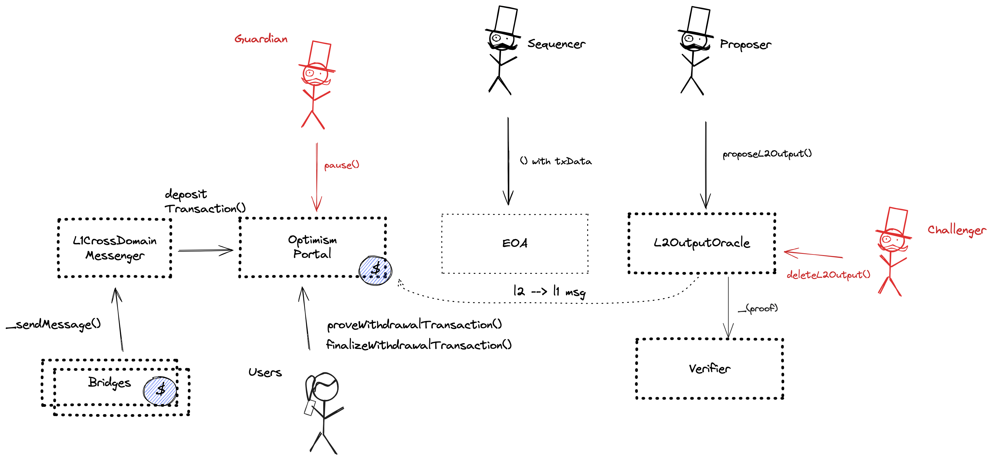 The operator is the only entity that can propose blocks. A live and trustworthy operator is vital to the health of the system. The L2 code has been modified to allow the sequencer to explicitly censor selected L1->L2 transactions.
